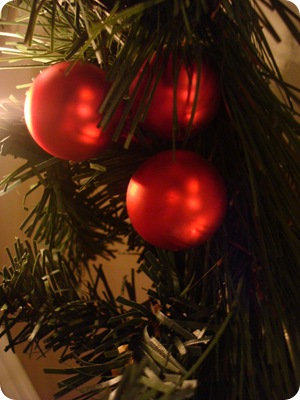 I had little swags I used to put on my doorknobs in the past, but in my effort to simplify a bit this year, I wasn’t going to use them. So I just added them to the ends of the garland, then added one of my dollar store reindeer ornaments for some glitter: